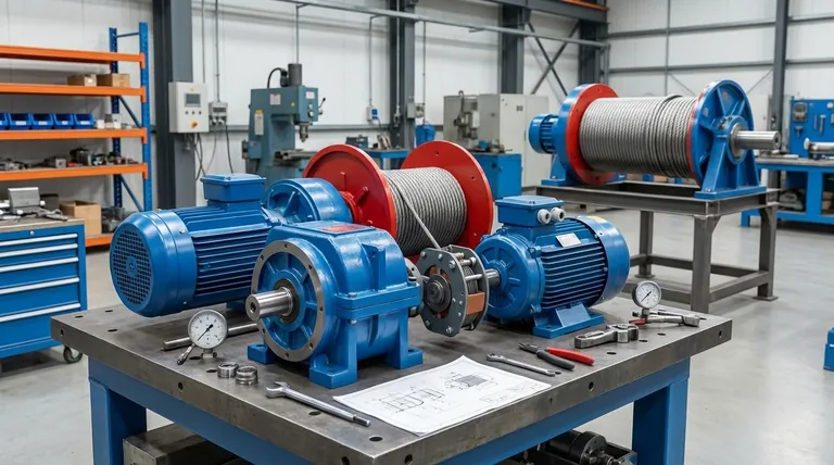Электрическая лебедка — это не просто двигатель; это полноценная механическая система. Каждый компонент играет критически важную роль в увеличении силы и обеспечении безопасной, контролируемой работы, превращая высокоскоростное вращение двигателя в мощное, низкоскоростное тяговое усилие.